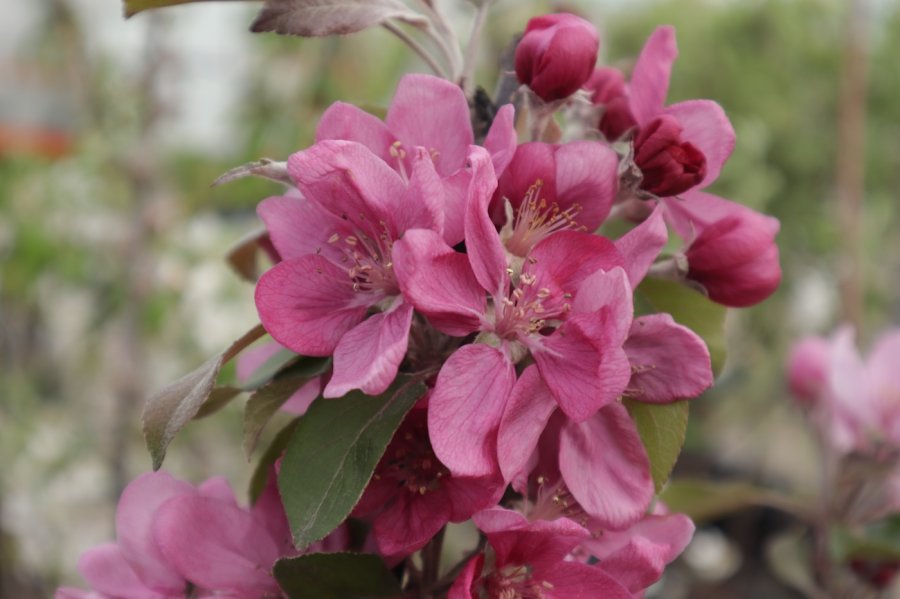Deze appelbomen beginnen in het voorjaar met een mooie rode bladkleur, maar verkleuren gedurende het seizoen naar een groene bladkleur.
