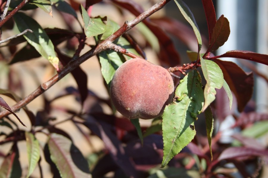 Ook de vruchten van de rode perzik Rubira hebben een rode schil.