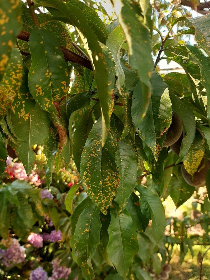 Omdat perzikroest vaak pas laat in het seizoen toeslaat, zijn chemische bestrijdingsmiddelen in een privétuin vaak lastig effectief toe te passen.